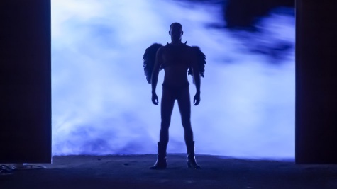 Ken Mifune is strapped to a St. Andrew’s Cross. A bishop’s mask blinds his eyes and a gag fills his mouth, but it doesn’t stifle his whimpering, as Matt Majors cruelly works the slave’s nipples before getting him to slather up his cock for a “Major’s” fucking.