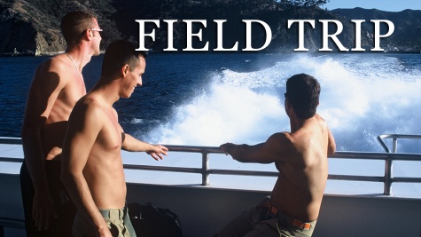 Antonio’s studying with some of his college buds, shirtless and so comfortable, he’s apparently unconcerned that his huge balls are hanging out of his shorts. The guys all decide that taking a study break on Catalina Island is the perfect way to blow off some steam. Once they’ve arrived on the island and divided up to check things out, big and beefy Jason Hawke wastes no time in enjoying his vacation and face fucks hairy-chested Jason Kennedy. Jason K spit-shines Hawke’s swollen sack, and the two fuck each other and then jerk off, spewing jizz all over their muscular torsos.