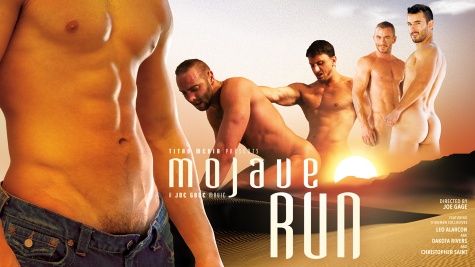 Driving down the desert highway, Dakota Rivers spots Christopher Saint—running without his pants. He stops in front of the mysterious stranger to prepare for his own run. The two lock eyes and the heat gets the best of them. With his boner bursting out of his jockstrap, the charming Dakota has Christopher under his spell. The two stare at each other, Dakota holding on to Christopher’s uncut cock as their chiseled bodies shine in the sun. Dakota continues his calm seduction, getting his admirer to bend over. “Take my ass, mate!” demands Christopher, who gets fucked fast and deep before the two soak the bottom’s bod with cum.